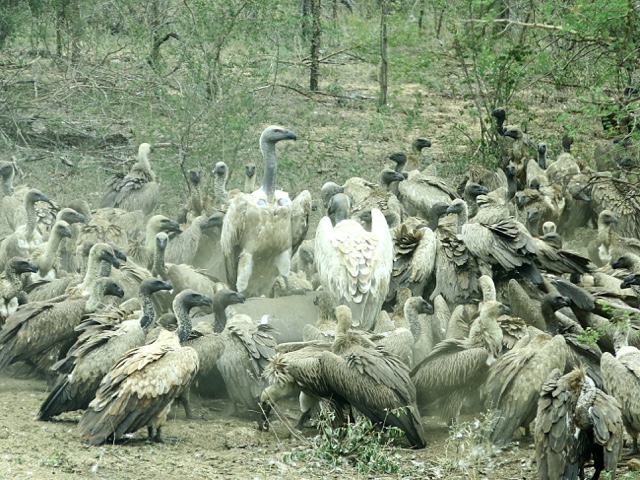 En flodhäst hade nyligen bitit i sitt sista gräs och det var vilt slagsmål bland gamarna att få komma fram till dukat middagsbord.